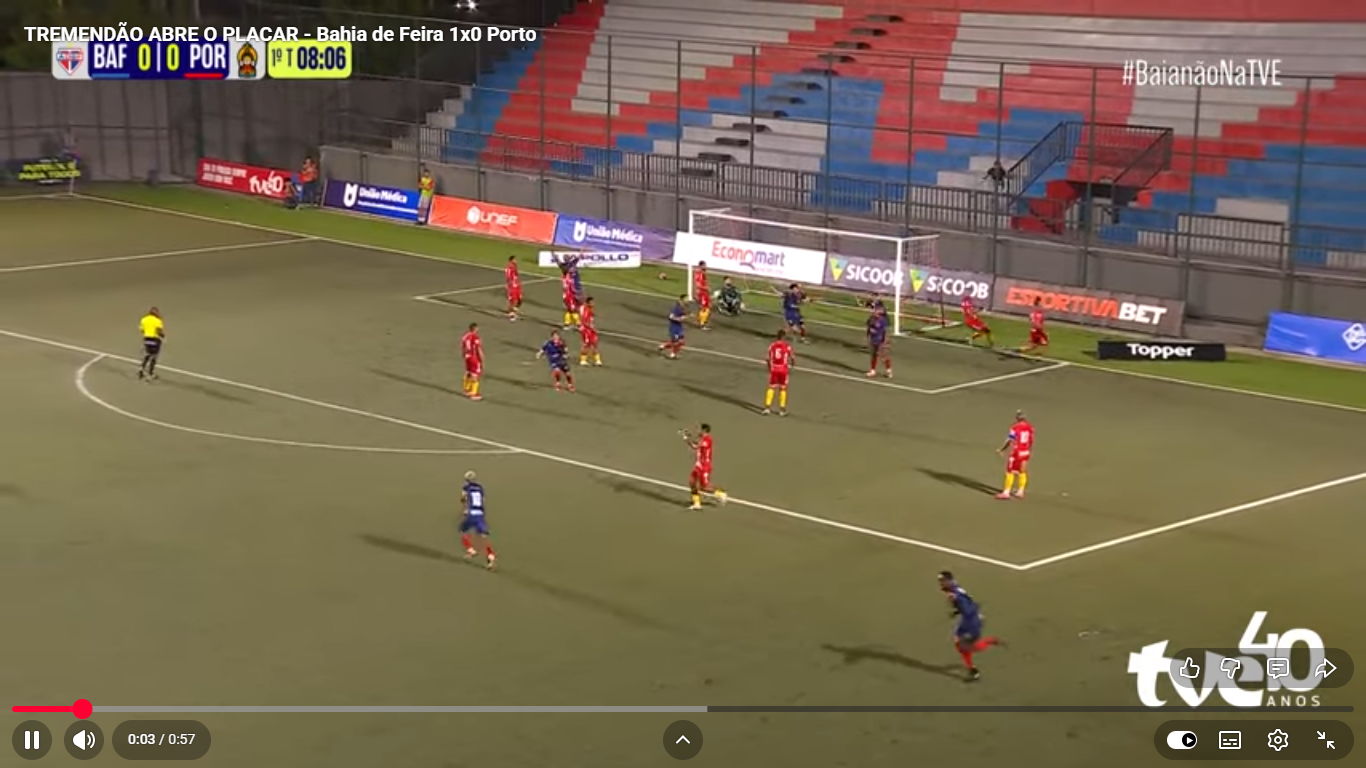 O duelo começou equilibrado, e o Bahia de Feira abriu o placar ainda no primeiro tempo com um belo gol de Alex Cazumba. Mesmo com um jogador a mais em campo após expulsão do adversário, o Tremendão não conseguiu segurar a vantagem e viu o Porto empatar no fim da partida, resultado que manteve a equipe com quatro pontos na tabela.