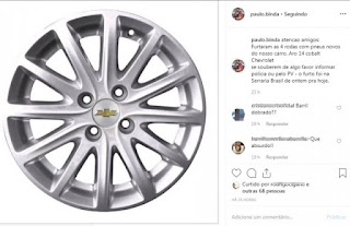 Bindá relatou o episódio nas redes sociais e divulgou fotos na tentativa de reaver os objetos furtados. As rodas são de aro 14, de liga leve.