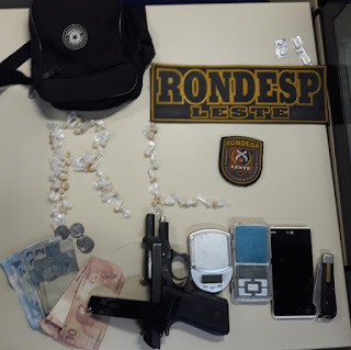 Os policiais apreenderam durante a operação, uma pistola calibre 380, 49 pedras de crack, duas balanças de precisão, um aparelho celular, um canivete e uma pequena quantia em dinheiro.