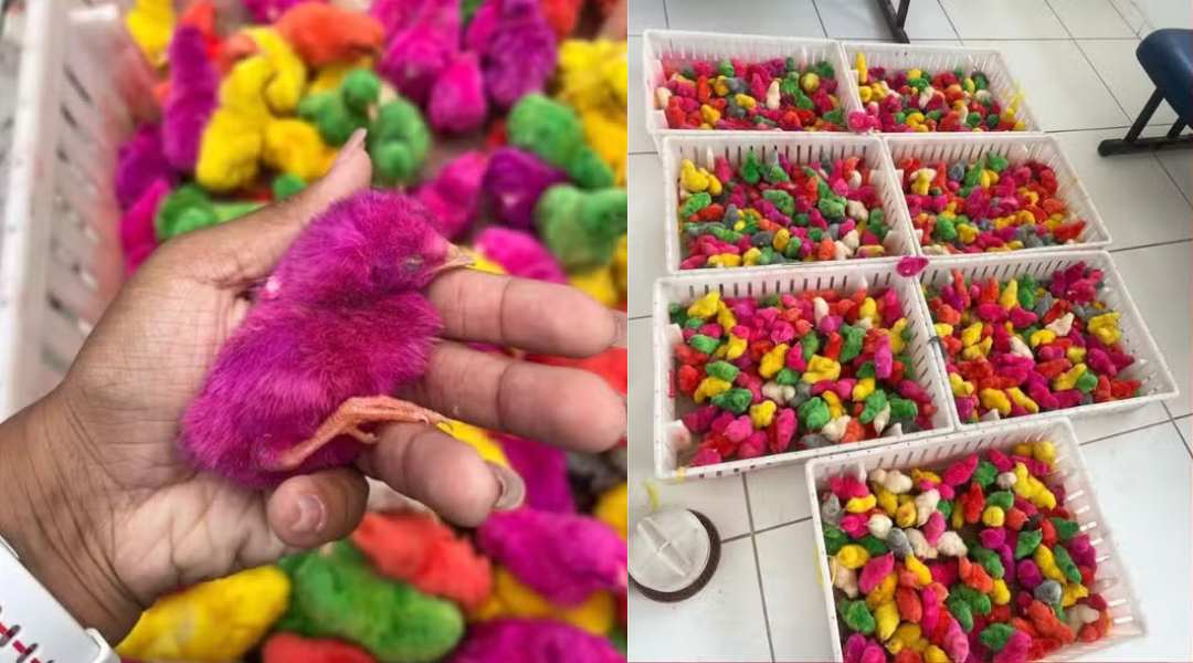 De acordo com a Prefeitura, os animais estavam sendo vendidos de forma ilegal e tinham sido tingidos com corantes artificiais, prática que configura crime ambiental e é classificada como maus-tratos, sujeita a detenção e multa.