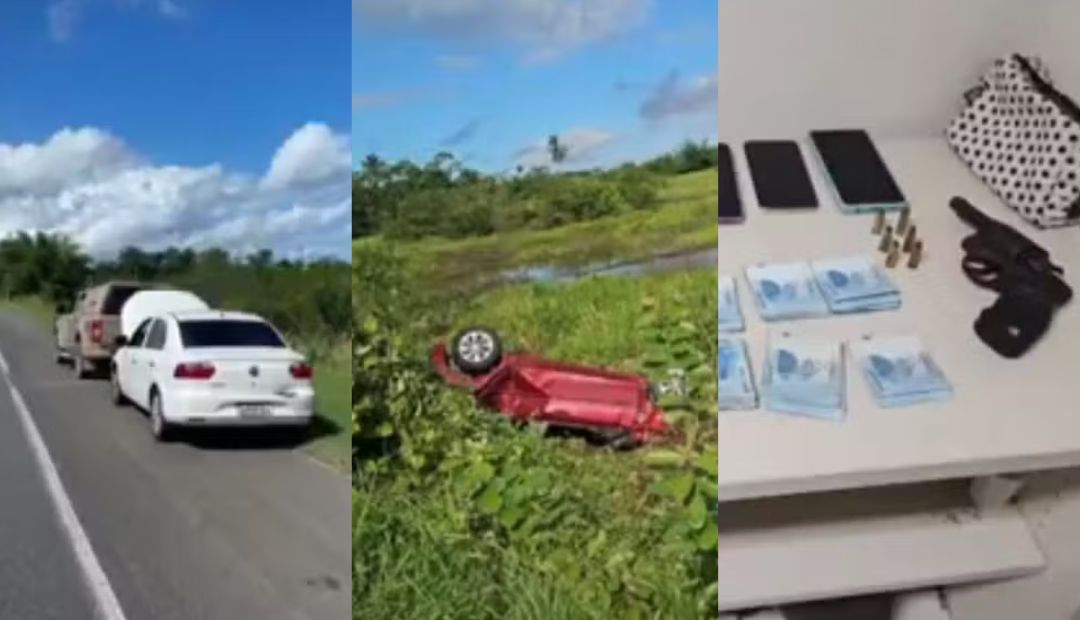 Em seguida, o segundo carro foi interceptado. Nele estavam os outros dois homens. A dupla estava com um revólver, seis celulares e uma quantia em dinheiro, cujo valor não foi revelado.